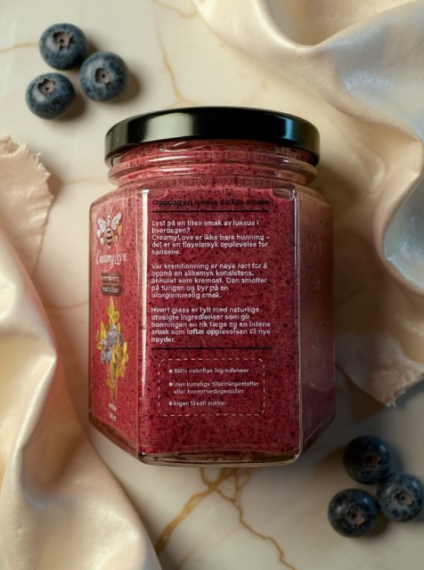 Dykk ned i skogens mystikk med vår kremhonning med blåbær. Smaken av håndplukkede bær med sin naturlige sødme og et hint av syrlighet gir en eksplosjon av friskhet i hver skje. Kombinasjonen med vår kremede honning gir deg følelsen av naturens beste, forvandlet til en gourmetdelikatesse. Hvordan vil du nyte denne smaken?