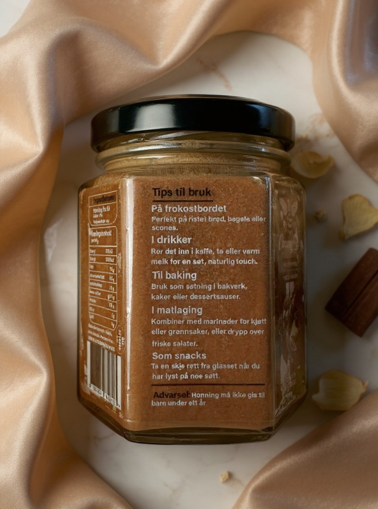 Unn deg selv en ekte luksusopplevelse med vår kremhonning med kakao og vanilje. Smaken av fyldig kakao, kombinert med den varme, søte aromaen av ekte vanilje, gir en følelse av å nyte dessert i en femstjerners restaurant. Med honningens silkemyke konsistens blir hver skje en hyllest til velvære. Kan noe smake mer luksuriøst?