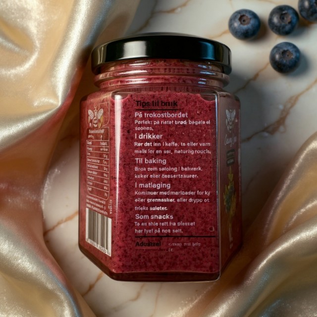 Dykk ned i skogens mystikk med vår kremhonning med blåbær. Smaken av håndplukkede bær med sin naturlige sødme og et hint av syrlighet gir en eksplosjon av friskhet i hver skje. Kombinasjonen med vår kremede honning gir deg følelsen av naturens beste, forvandlet til en gourmetdelikatesse. Hvordan vil du nyte denne smaken?