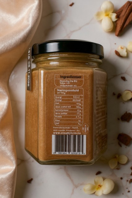 Unn deg selv en ekte luksusopplevelse med vår kremhonning med kakao og vanilje. Smaken av fyldig kakao, kombinert med den varme, søte aromaen av ekte vanilje, gir en følelse av å nyte dessert i en femstjerners restaurant. Med honningens silkemyke konsistens blir hver skje en hyllest til velvære. Kan noe smake mer luksuriøst?